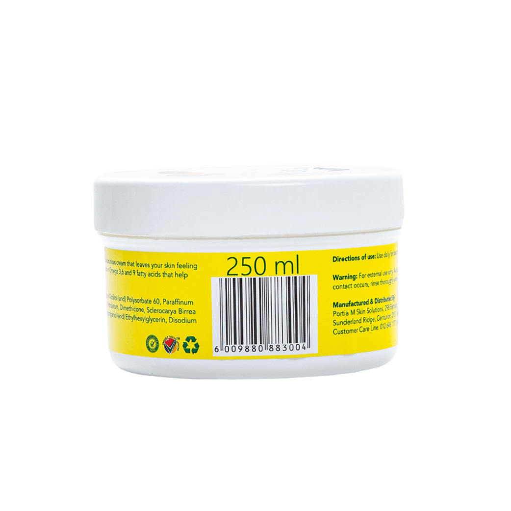 Marula skin oil body cream is a luxurious cream that leaves your skin feeling hydrated soft and smooth. It’s rich in omega 3, 6 and 9 fatty acids that help rebuild skin cells. Proudly South African®. 250 ml. Dermatologically tested and approved at: Agricultural Research Council Roodeplaat, Vegetable and Onamental Plants. Agro-Processing if Medical and Food Crops Lab.
