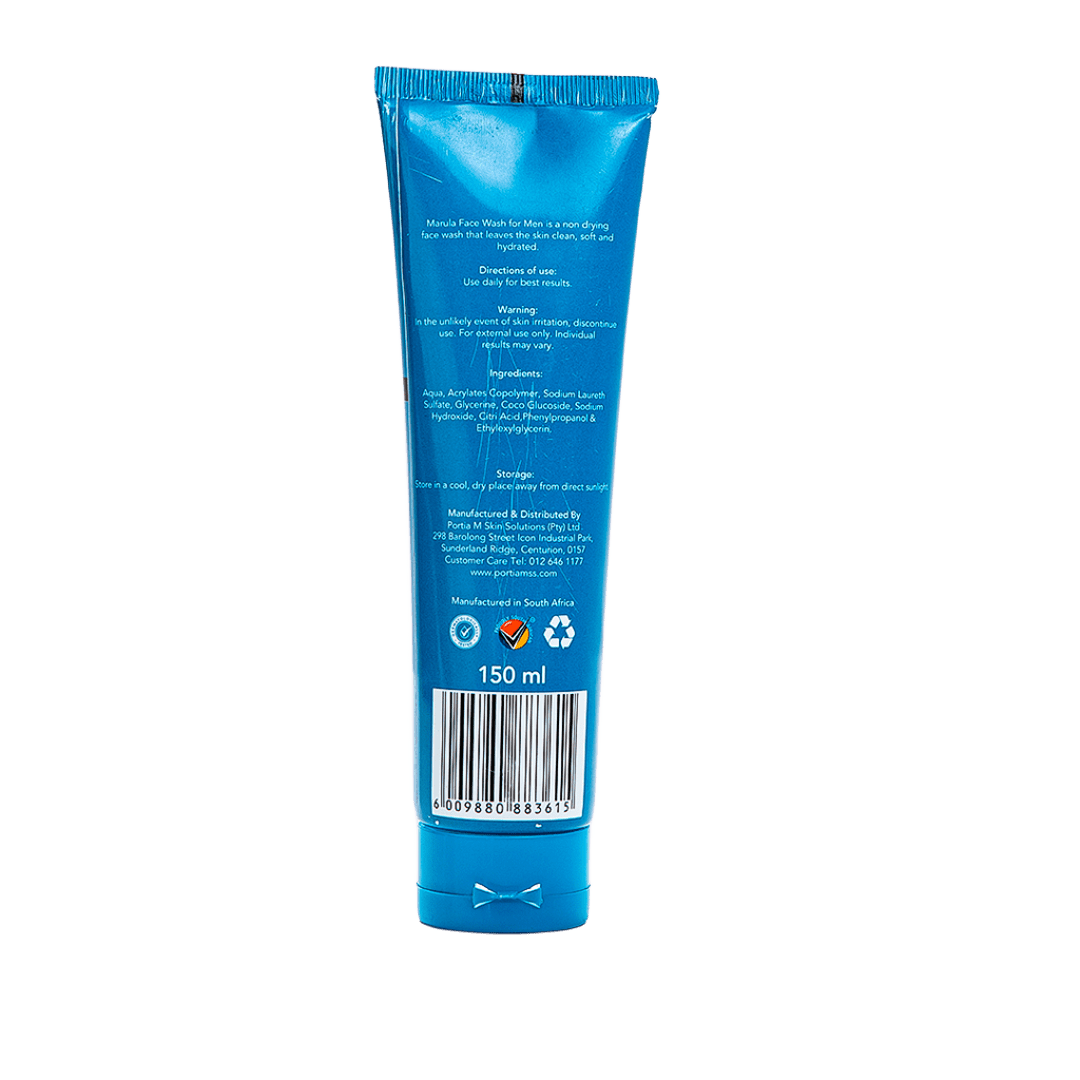 Portia M Male Facewash Marula 150ml purifies and gently cleans all skin types. Use daily to cleanse and nourish the skin.