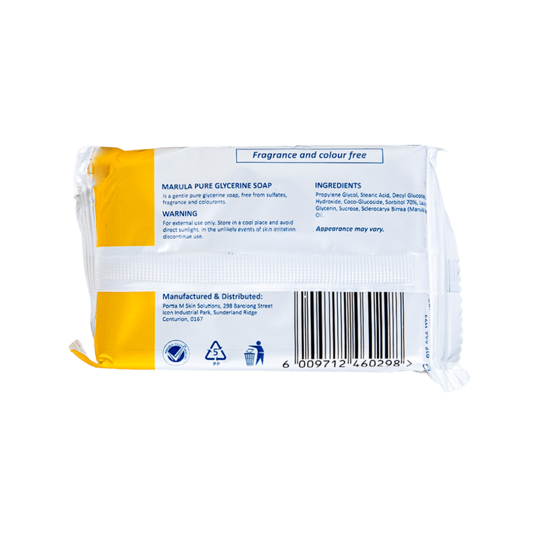 Portia M Marula Glycerine Soap 150g is gentle enough to use on your baby, doesn’t clog pores and won’t irritate eczema-prone or sensitive skin.