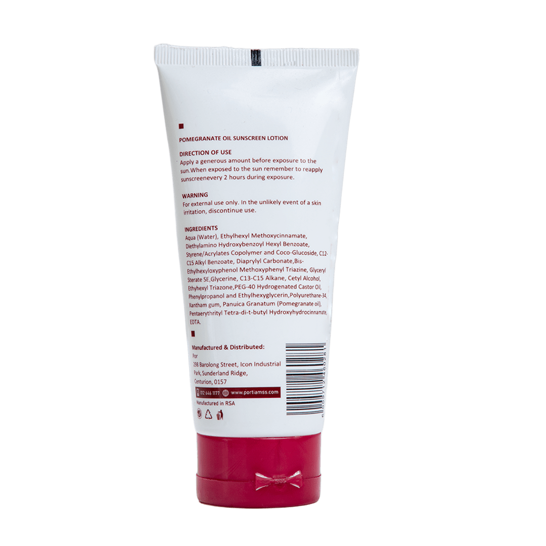 | Marketing description: | Portia M™. Pure luxury for your skin. Pomegranate. SPF50 Sunscreen Lotion. Protect Your Glow |